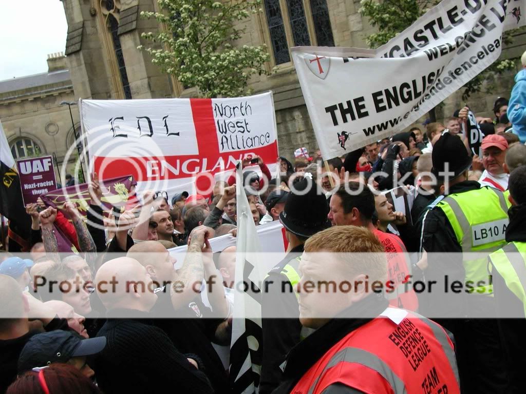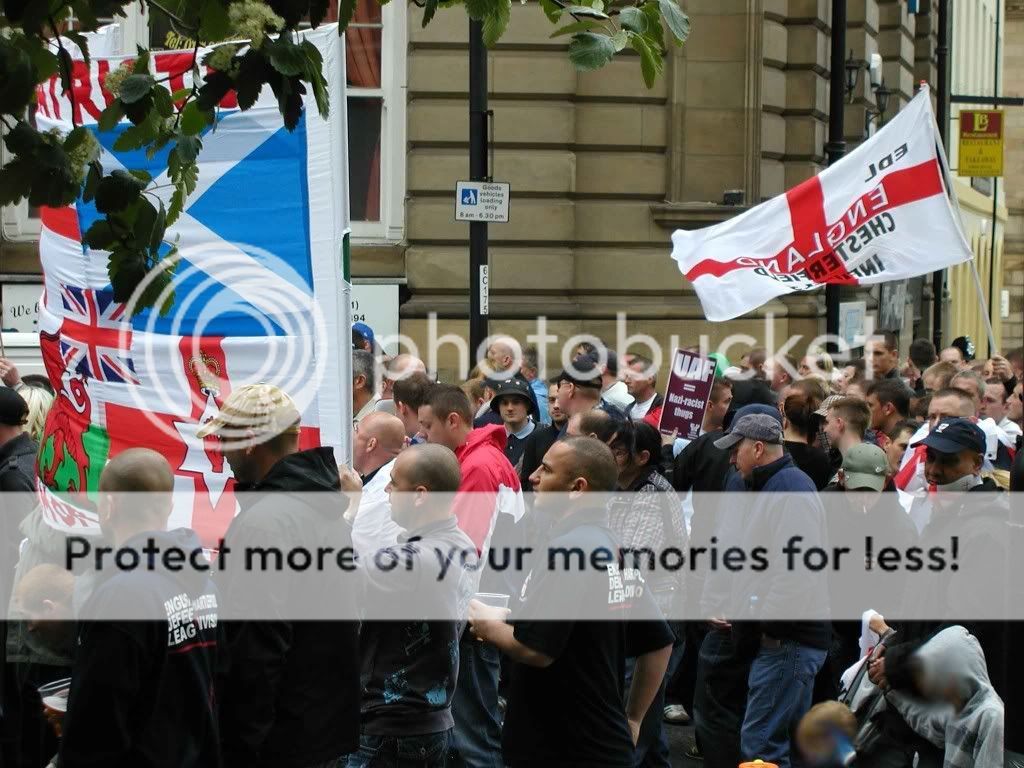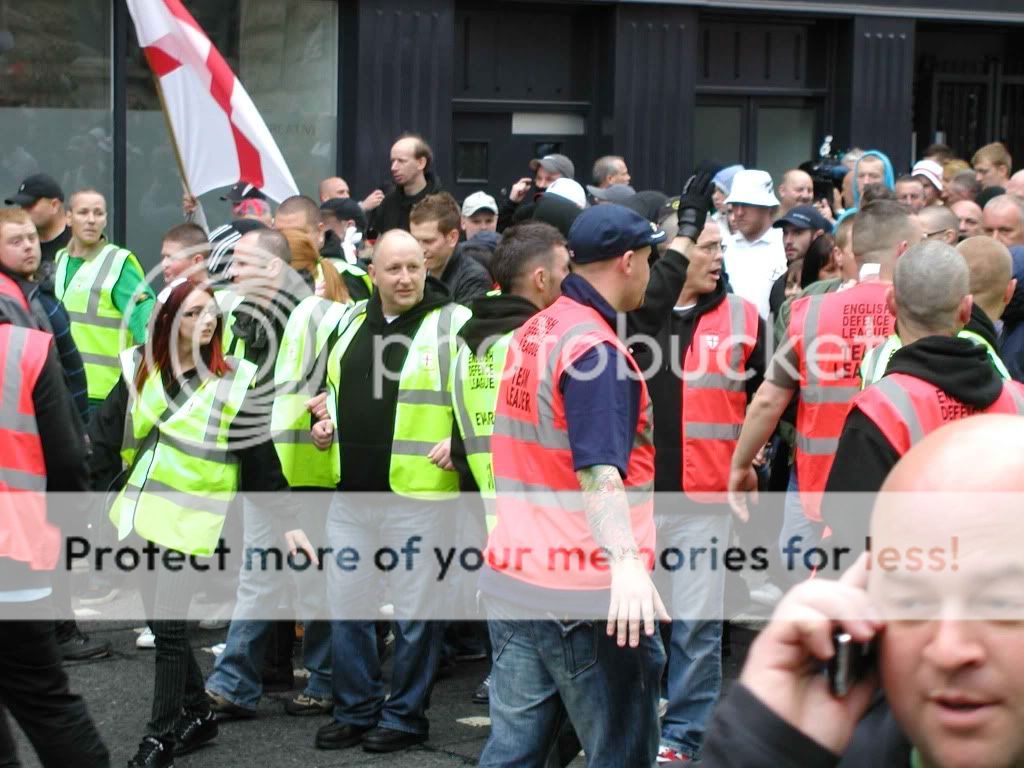 I think what was missed was an opportunity to present an alternative message about the REAL terror we are facing today as the working class prepare to pay for the rich’s economic crisis. That the EDL’s ‘message’ of paranoid, delusional, right-wing, anti-worker, forelock-tugging patriotism mixed with a bit of wannabe-Loyalist, off-duty Fascism, Zionist lunacy and a side-order of England football songs offers the working class NO WAY OUT would then either become obvious to any of their potential recruits or could be spelled out if necessary. People like EDL are part of the problem not part of the solution and that’s the message that needs to be broadcast.