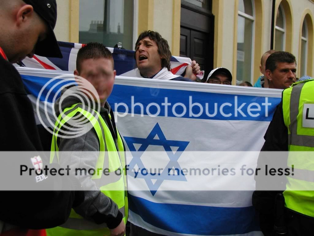 There was also an “Israel” chant which wasn’t taken up by some of the marchers for some reason…wouldn’t go down to well at the next Stormfront social eh lads? But it was still quite a surprise seeing dyed in the wool Nazis marching under the Star of David! (On a similar note, some of Sunderland’s casuals decided to hold the hand of their rival football firm for their walk around the Toon!)